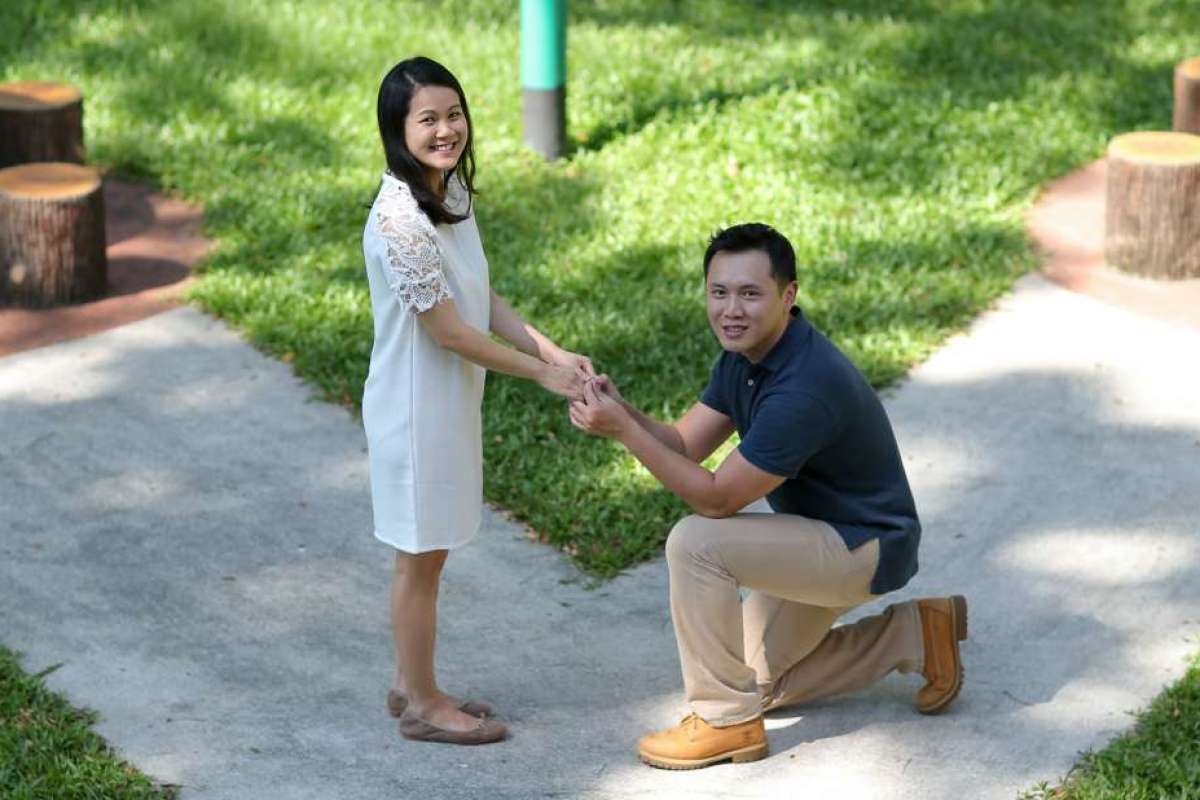 However, fashion director Wang Titien decided it was best to stick to convention when he proposed to his girlfriend in July 2015.